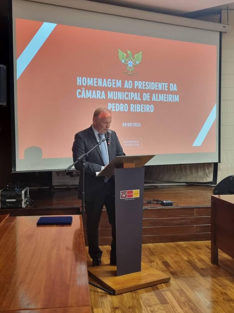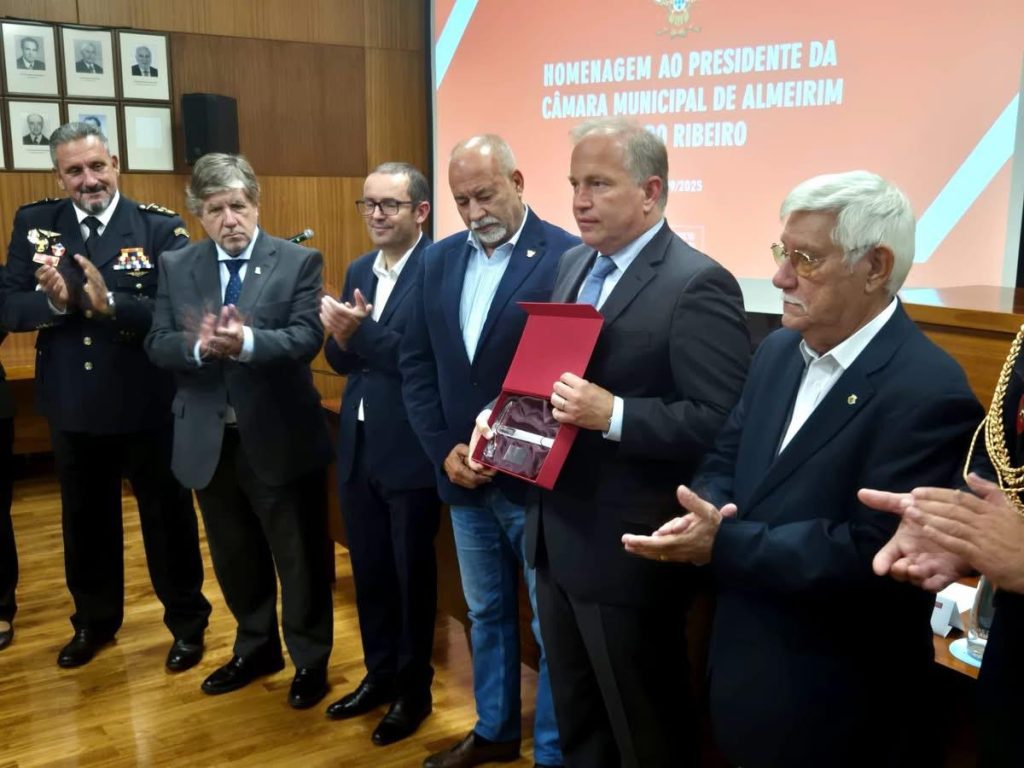 A Liga dos Bombeiros Portugueses distinguiu, esta terça-feira, 9 de Setembro, o presidente da Câmara Municipal de Almeirim, Pedro Ribeiro, com o Machado de Honra. A cerimónia decorreu no salão nobre dos Paços do Concelho, numa iniciativa conjunta da Liga, da Federação de Bombeiros do Distrito de Santarém e da Associação Humanitária de Bombeiros Voluntários de Almeirim.