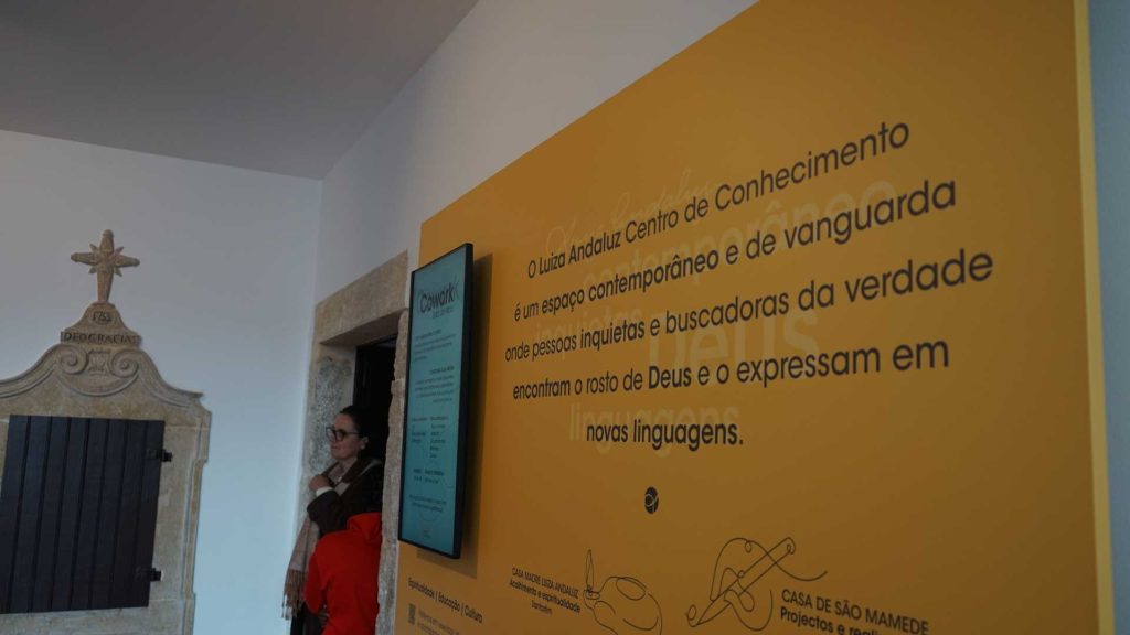 A irmã Mafalda Leitão explica que a Sala do Arco, que “seria na base do convento o Coro Baixo”, vai ser um “espaço de cowork”, onde a cidade e as pessoas de Santarém podem trabalhar, estudar, mas também usar para “reuniões de empresas, grupos, paróquias”, conferências, com capacidade para 20 a 30 pessoas.