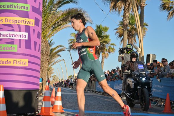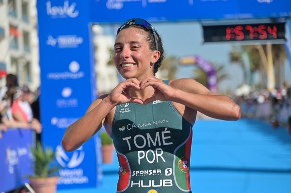A atleta do CNTN saiu da água em 7.º lugar, a 12 segundos da belga, mantendo-se sempre no grupo da frente no segmento de ciclismo e iniciando a corrida na 2.ª posição, que nunca mais deixou até à meta, terminando com “um sorriso rasgado na cara e as mãos ao alto em forma de coração, visivelmente emocionada”.