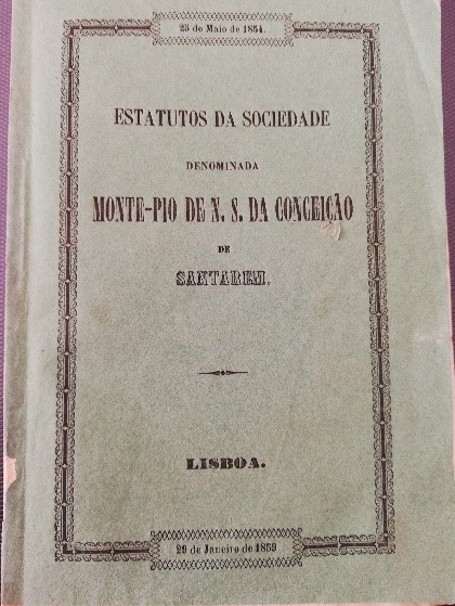 O Monte-pio de Nossa Senhora da Conceição de Santarém foi fundado a 5 de Maio de 1854, sendo uma “caixa de socorros mútuos para acudir aos inscritos”. Os órgãos sociais compostos por Luís de Sá Pereira (presidente), Francisco Joaquim de Faria (vice-presidente), José Maria de Aquino Júnior, José Faustino do Carmo (secretários), Firmino de Paula Barradas (tesoureiro), Manuel Pedro Petrone, Pedro Marques de Miranda, Constantino António Duarte, Manuel Ribeiro Pinto (vogais) solicitaram a aprovação dos estatutos desta associação mutualista, a 25 de Outubro de 1858. Estes foram aprovados pelo alvará de 29 de Janeiro de 1859 e publicados numa tipografia desconhecida de Lisboa, nesse ano. O Monte-pio tinha por missão “prestar socorros a todos os seus sócios, na enfermidade, na decrepitude, na prisão, e nas mais circunstâncias previstas e declaradas nestes Estatutos, e cuidará também dos seus funerais, e bem da alma por via de sufrágios” (p. 10). No entanto, “não será admitido na sociedade indivíduo algum da notória e conhecida pobreza e inabilidade moral ou física” (p. 11). Os sócios pagavam dois mil réis de jóia e quarenta réis semanais. Apesar dos sócios serem do sexo masculino, as viúvas, desde que se inscrevessem na associação, ficavam com direito aos mesmos apoios que os seus maridos. A vida desta associação encontra-se registada no “Livro de actas do Monte-pio de Santarém” (5/5/1854 a 30/4/1861). Nesse último ano, os dirigentes eram Francisco Joaquim de Faria (presidente), Francisco António Montez (tesoureiro), Manuel Ribeiro Pinto (vice-tesoureiro), João Cesário da Costa, Francisco de Paula da Cunha (secretários), António Bernardino da Silva, José Maria Soares, Francisco José de Carvalho (vogais).