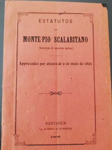 O Monte-pio Philarmonico, Primeiro de Dezembro foi fundado a 18 de Março de 1884. Os estatutos aprovados pelo alvará de 9 de Maio de 1895 e publicados na tipografia de Bernardino Santos, nesse ano, permitiram a reorganização da associação que passou a chamar-se Monte-pio Scalabitano. Os estatutos foram reformulados, conforme a publicação na tipografia do “Correio da Extremadura”, em 1908. Entre os presidentes da direcção destacaram-se José Maria Pereira e Sá (1889), Francisco Marques Ferreira da Cunha e Silva (1893), Joaquim Jesus de Oliveira (1910), Joaquim Francisco Alhandra (1915) e António Duarte Carmo (1920).