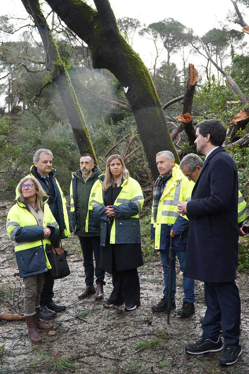 A visita incluiu a observação dos danos no Convento de Cristo, Património Mundial da UNESCO, onde se registaram, entre outras ocorrências, a destruição de um vitral e o desprendimento de duas gárgolas, bem como os impactos significativos na envolvente arbórea, nomeadamente no laranjal histórico e na Mata dos Sete Montes, área contígua ao monumento e gerida pelo Instituto da Conservação da Natureza e das Florestas (ICNF).