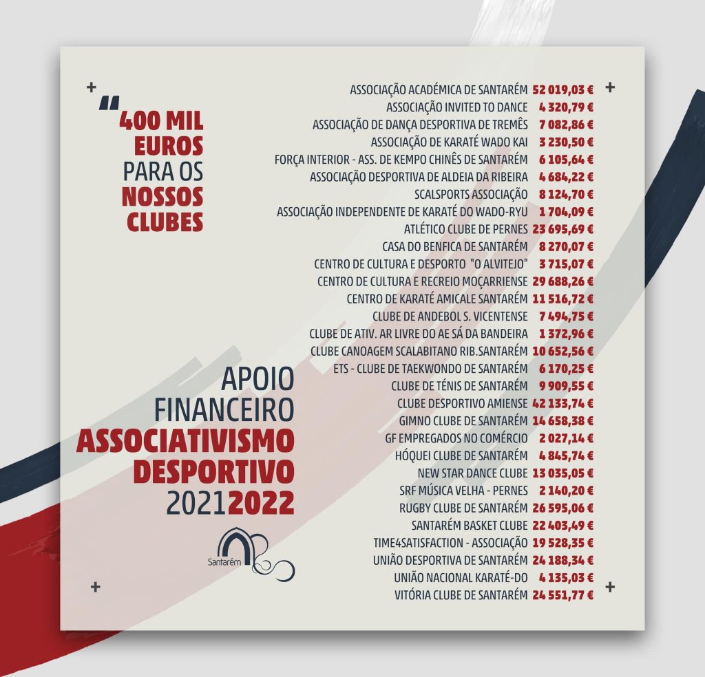 Ricardo Gonçalves, Presidente da Câmara Municipal de Santarém, deixou “o agradecimento aos Clubes, que ao longo dos anos têm feito um trabalho excecional. Nos últimos 15 anos, o número de praticantes mais do que duplicou com enorme impacto e retorno para o desenvolvimento do Concelho e para a qualidade de vida dos nossos cidadãos”.