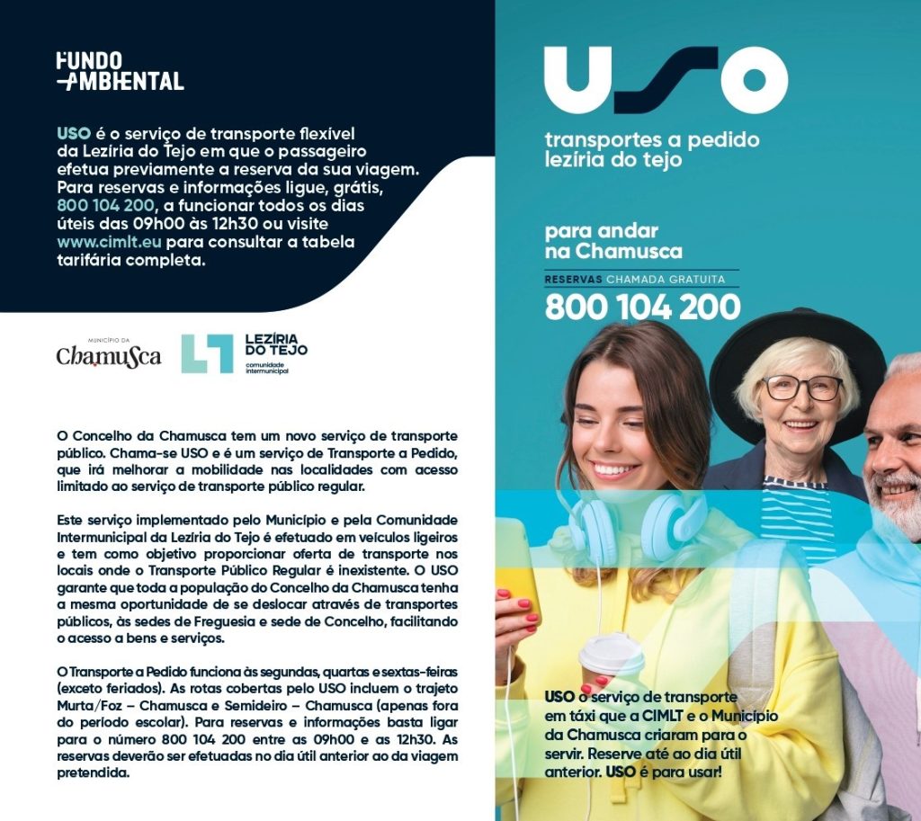 O Concelho da Chamusca tem, desde 23 de Outubro, um novo serviço de Transporte Público. Chama-se USO e é um serviço de Transporte a Pedido, que irá melhorar a mobilidade nas localidades com acesso limitado ao serviço de transporte público regular.