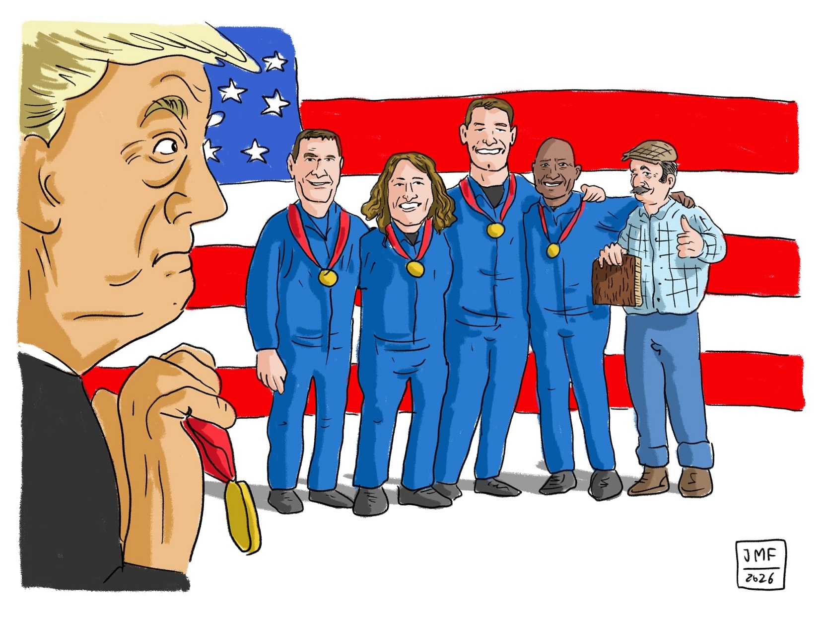 A humanidade atingiu mais um marco na exploração espacial com a missão Artemis II, que levou os valorosos astronautas Jeremy Hansen, Christina Koch, Reid Wiseman e Victor Glover até ao lado obscuro da lua, nunca tendo um ser humano estado tão longe da Terra. Mas claro que Portugal, país de descobridores, não poderia ter ficado de fora, isto porque a nossa cortiça, também foi à lua, sendo um componente essencial na protecção de estruturas críticas em vários componentes sujeitos a temperaturas elevadíssimas da nava desta missão. Ora não poderia o Senhor Manuel, agricultor e dono dos sobreiros escolhidos, da Lamarosa, deixar de receber a sua medalhinha de mérito do Presidente dos Estados Unidos da América…