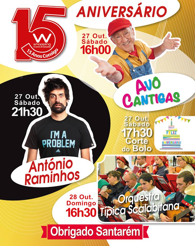 No fundo, é este o programa que temos para oferecer no aniversário do W Shopping, que vai ocorrer entre 27 e 28 de Outubro. Logo no sábado, teremos uma noite de “stand up comedy” com o conhecido António Raminhos.