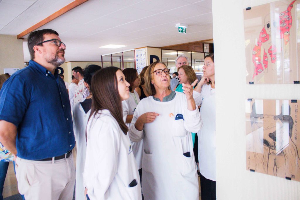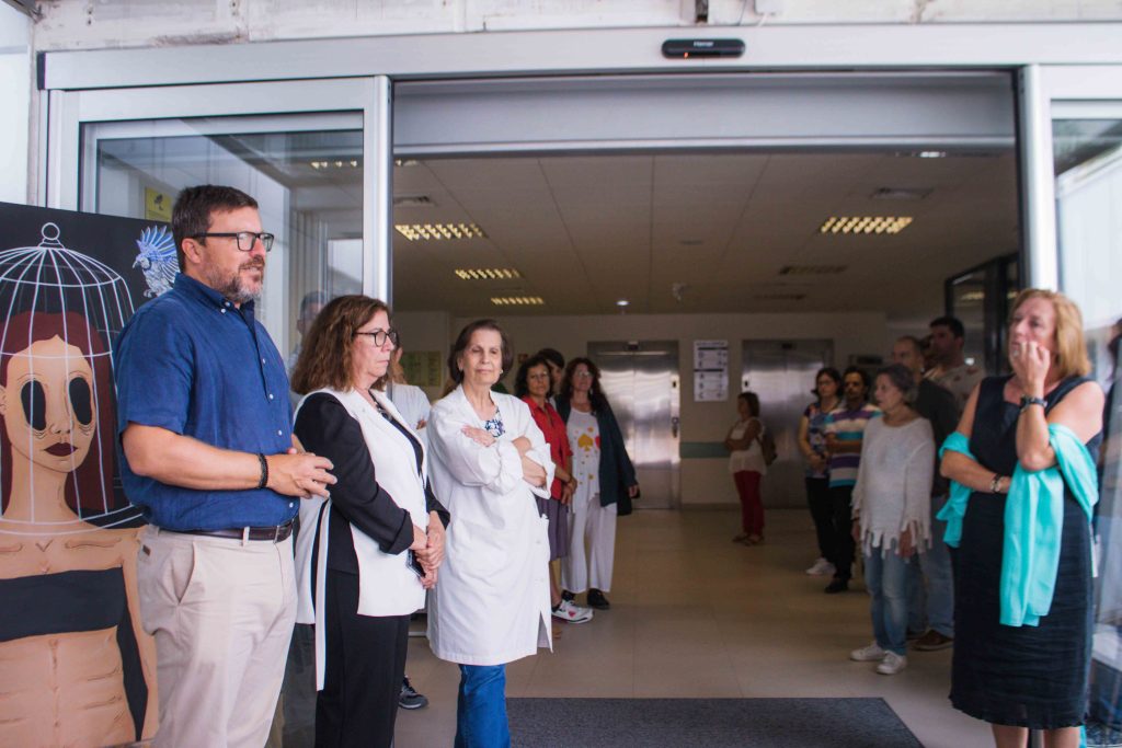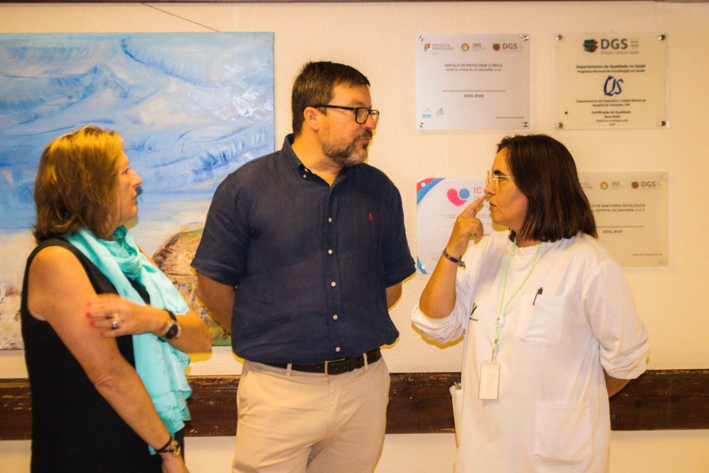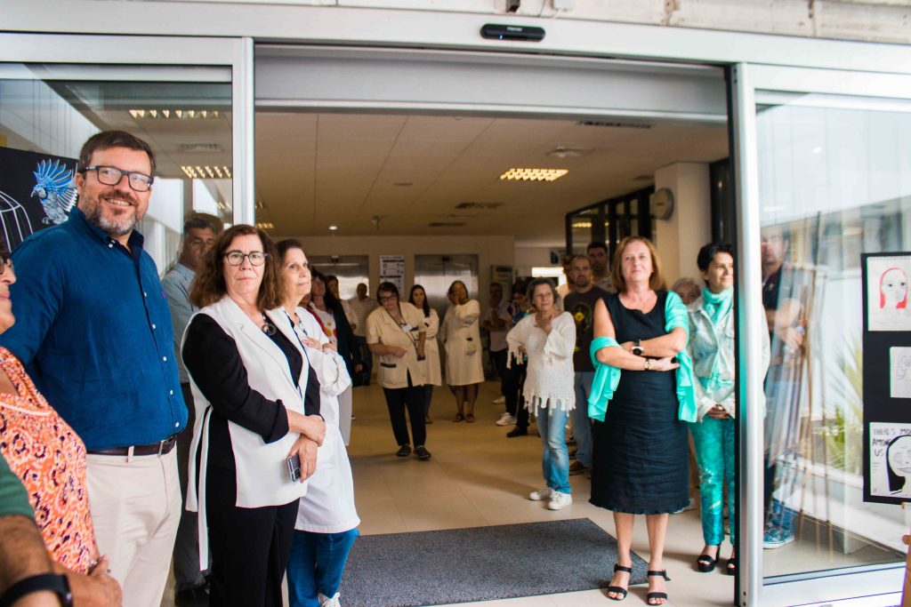 O evento contou com a presença de Ricardo Gonçalves, presidente da Câmara Municipal de Santarém (CMS), de Elisabete Filipe, chefe de divisão da Ação Social e da Saúde da CMS, e do Conselho de Administração do HDS, Ana Infante, presidente Conselho de Administração do HDS, Carla Ferreira, enfermeira coordenadora da oficINa, e Ana Carvalho, curadora da exposição.