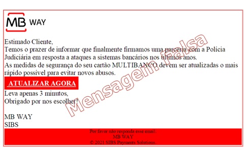 As autoridades assinalam que “não foi feita qualquer parceria com este fim“, entre a Policia Judiciária e a SIBS, e que esta mensagem “tem como único propósito a prática de crime de acesso ilegítimo e captura de dados pessoais das vítimas”.