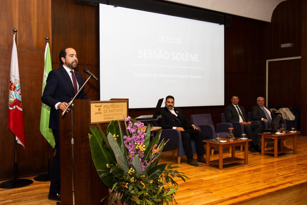 O Presidente do Município de Santarém acrescentou ainda que o “Instituto Politécnico de Santarém é determinante para o nosso crescimento e para o nosso desenvolvimento”, e aproveitou a oportunidade para saudar “o Presidente do IPS pela capacidade e audácia pelos projetos que estão a ser desenvolvidos e que tive a oportunidade de visitar, através de várias fontes de financiamento, seja através Portugal 2030, mas também com grande foco para o PRR”, numa alusão ao Campus Andaluz, onde está a ser construído o novo Pólo de Pós-Graduações, numa obra, avaliada em 1.888.250 €, que prevê a criação de um auditório com duzentos e setenta (270) lugares, sete salas para aulas e reuniões, bem como áreas de convívio e instalações sanitárias, bem como a nova Residência de Estudantes, que terá trinta e oito (38) camas e representa um investimento de 1.240.890 €. No Campus da Agrária está a ser construída uma nova residência de estudantes, com capacidade para setenta e cinco (75) camas. Na Escola Superior de Saúde, está a ser construído um novo piso de 900 m², com um investimento de 736.500 € que se destina à criação de um Laboratório Experimental de Saúde, que integrará o projeto RISE-HEALTH, em colaboração com a Faculdade de Medicina da Universidade do Porto, com o objetivo de promover a investigação e a inovação biomédica, consolidando o IPS como um exemplo de desenvolvimento sustentável no sistema científico nacional.