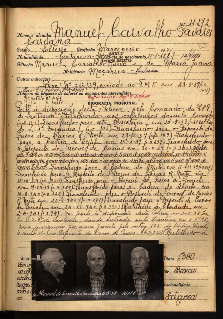 O marceneiro Manuel Carvalho Tavares Cardana nasceu na Moçarria, a 12 de Julho de 1886, sendo filho de Manuel Carvalho Tavares Cardana Ruivo e de Maria Joana. Este residente na Moçarria foi preso, a 11 de Maio de 1939, pela polícia de Santarém, sendo enviado para Caxias, a 25 de Maio e para o Aljube, a 23 de Outubro de 1939. Sete dias depois regressou a Caxias e, a 12 de Dezembro de 1939, entrou no Aljube. Três dias depois, estava novamente em Caxias e, entre 19 de Dezembro de 1939 e 10 de Agosto de 1940, foi encarcerado em Peniche. Novamente, passou pelas duas anteriores prisões políticas, até concluir a pena em Peniche, entre 24 de Novembro de 1940 e 2 de Abril de 1941. Manuel Cardana voltou a ser preso, a 3 de Maio de 1948, pela polícia de Santarém e enviado para Caxias de onde foi libertado a 14 de Maio de 1948 e, novamente pela mesma força policial escalabitana, a 2 de Fevereiro de 1949, permanecendo no Aljube até 7 de Abril desse ano.