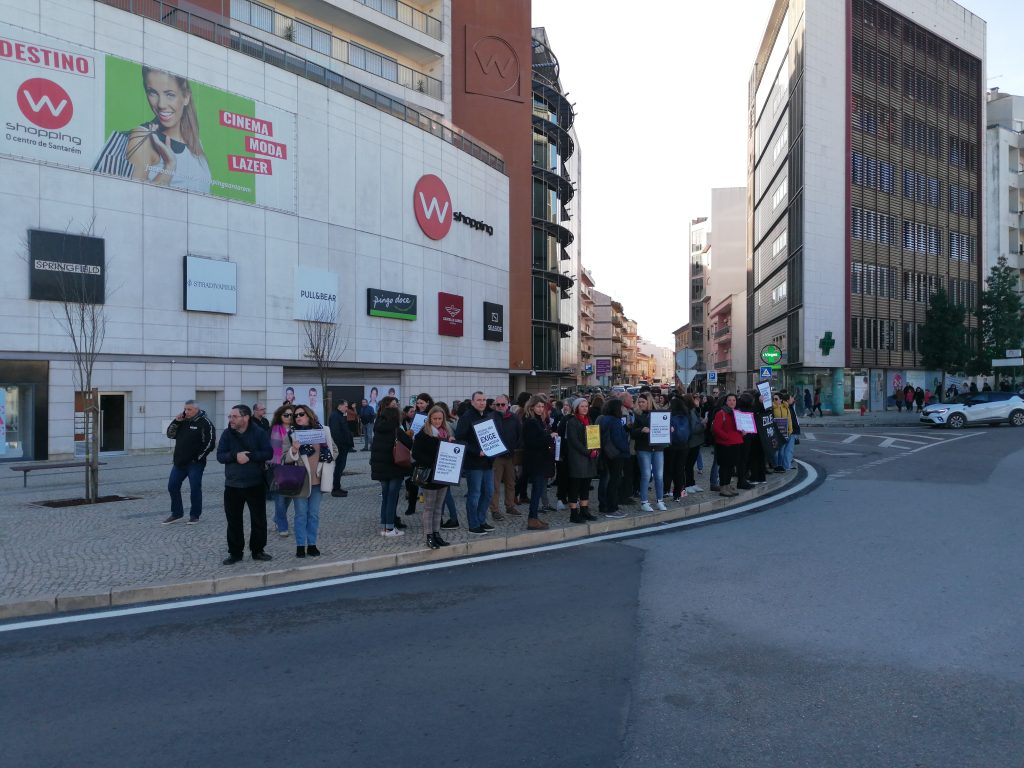 Para esta acção foi convocada uma greve e uma manifestação em frente ao W Shopping, que durou grande parte da manhã e juntou cerca de 400 professores numa das zonas mais centrais e mais movimentadas de Santarém, com o objectivo de dar mais visibilidade ao protesto.