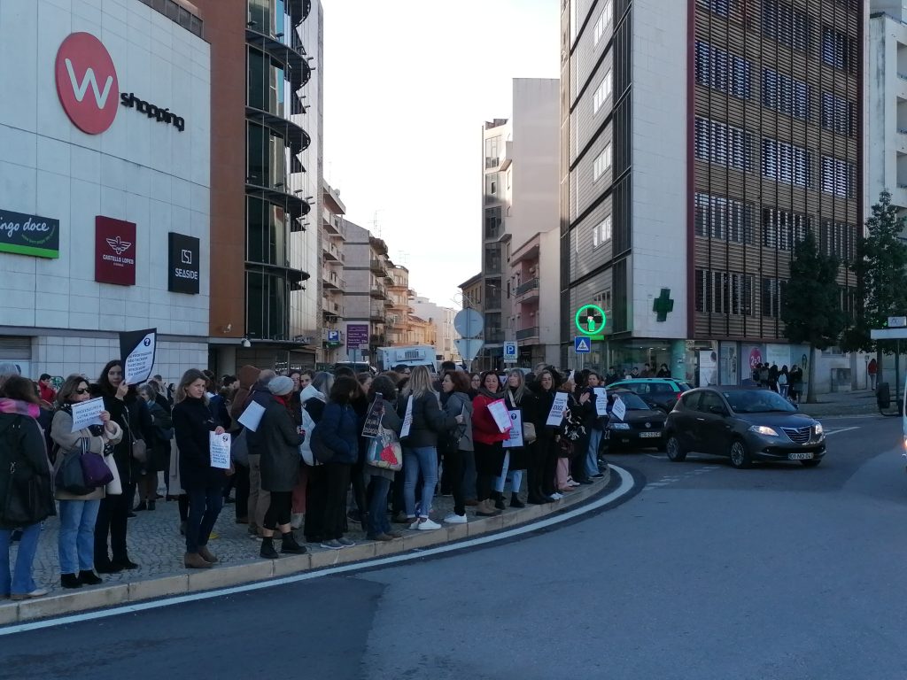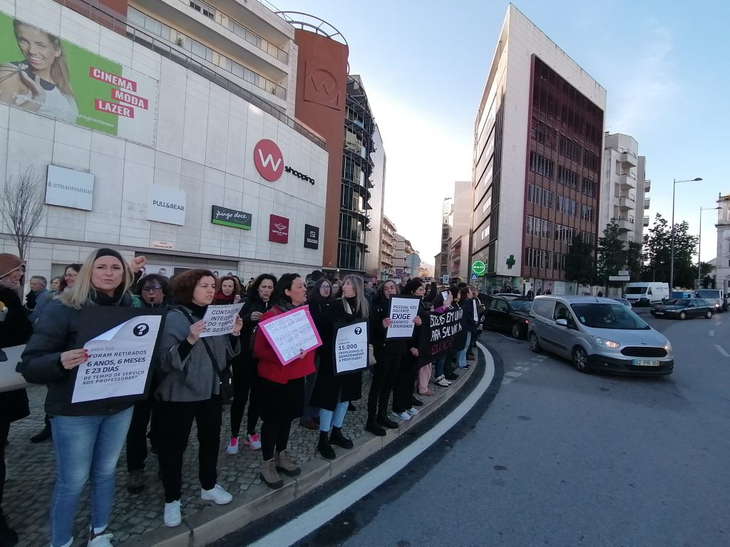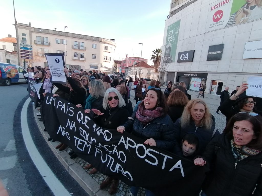 Centenas de professores marcaram presença em mais uma acção de protesto pela “defesa da escola pública”, na manhã de quinta-feira, 12 de Janeiro, no Largo Cândido dos Reis, em Santarém.