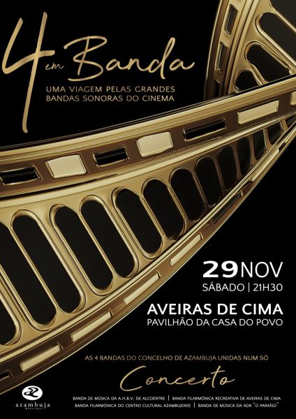As bandas filarmónicas do Concelho de Azambuja, voltam a reunir-se para a promover o projeto “4 em Banda”, regressando ao palco com um “espetáculo único”, inteiramente dedicado ao universo das bandas sonoras do cinema. Anunciou hoje, o Município de Azambuja em comunicado.