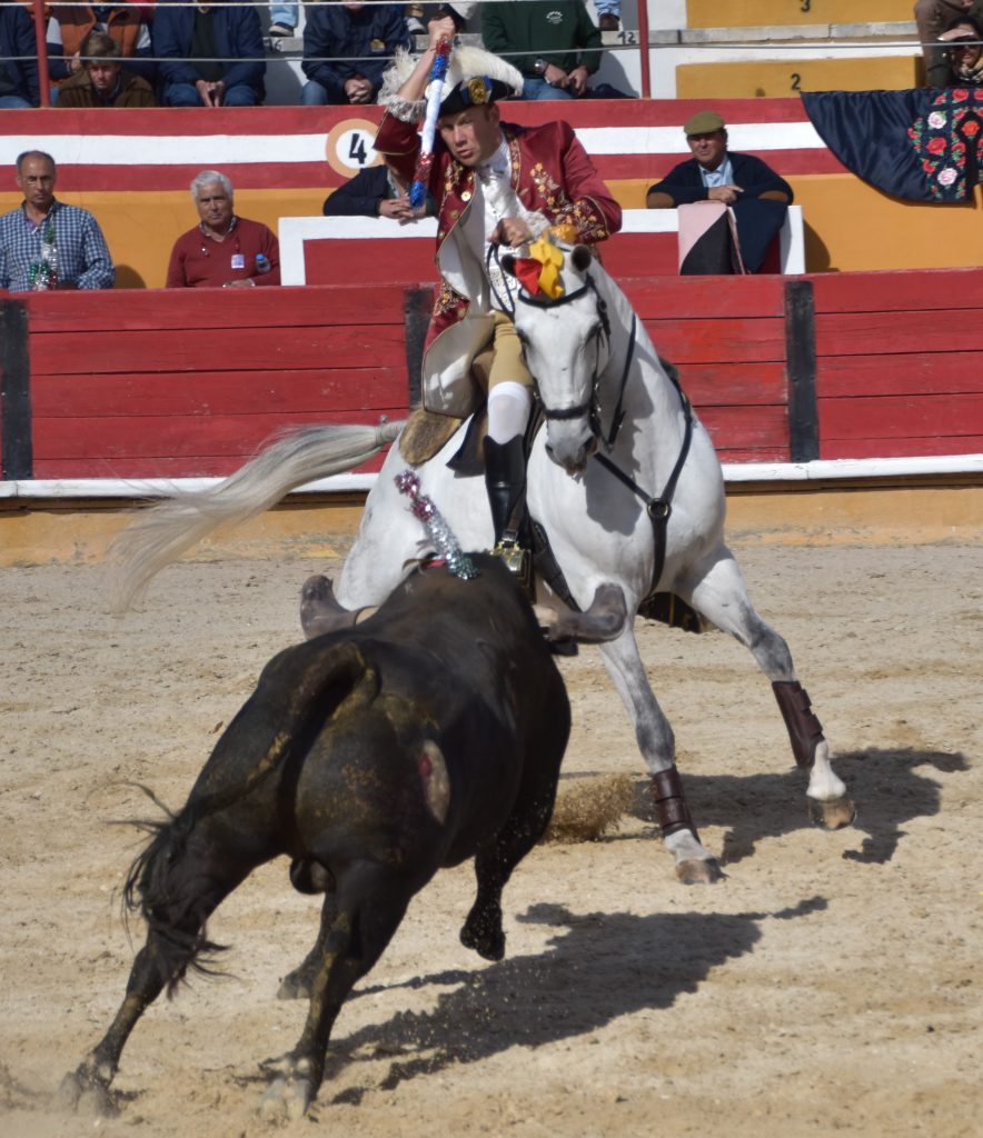 Posto que a maioria das suas actuações ocorre frente a toiros “em pontas”, a abordagem no centro da reunião nem sempre consente maior repouso e mais proximidade, algo que é disfarçado pelas batidas ao píton contrário, que empolgam o respeitável, que mesmo antes da colocação do ferro já se entregou ao toureiro. Do mesmo modo atravessamos uma fase em que os toureiros já trazem os números montados de casa e as suas montadas estão “especializadas” na sua execução, independentemente das condições dos seus toiros. Neste caso, até resultaram, pois, os toiros do Eng.º Jorge Carvalho em nada lhe complicaram a vida.