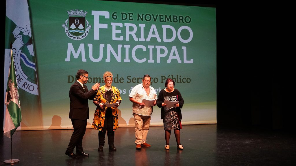 O Município de Rio Maior assinalou hoje 188 anos do Concelho com uma sessão comemorativa, no cineteatro municipal, na manhã desta quarta-feira (dia 6), durante a qual homenageou com Medalhas de Mérito – Grau Prata, António José Rocha Martins da Silva, Diana Aguiar de Sousa, Arlindo Bernardes Regueira (a título póstumo), e a Retrosaria Casa Marques.