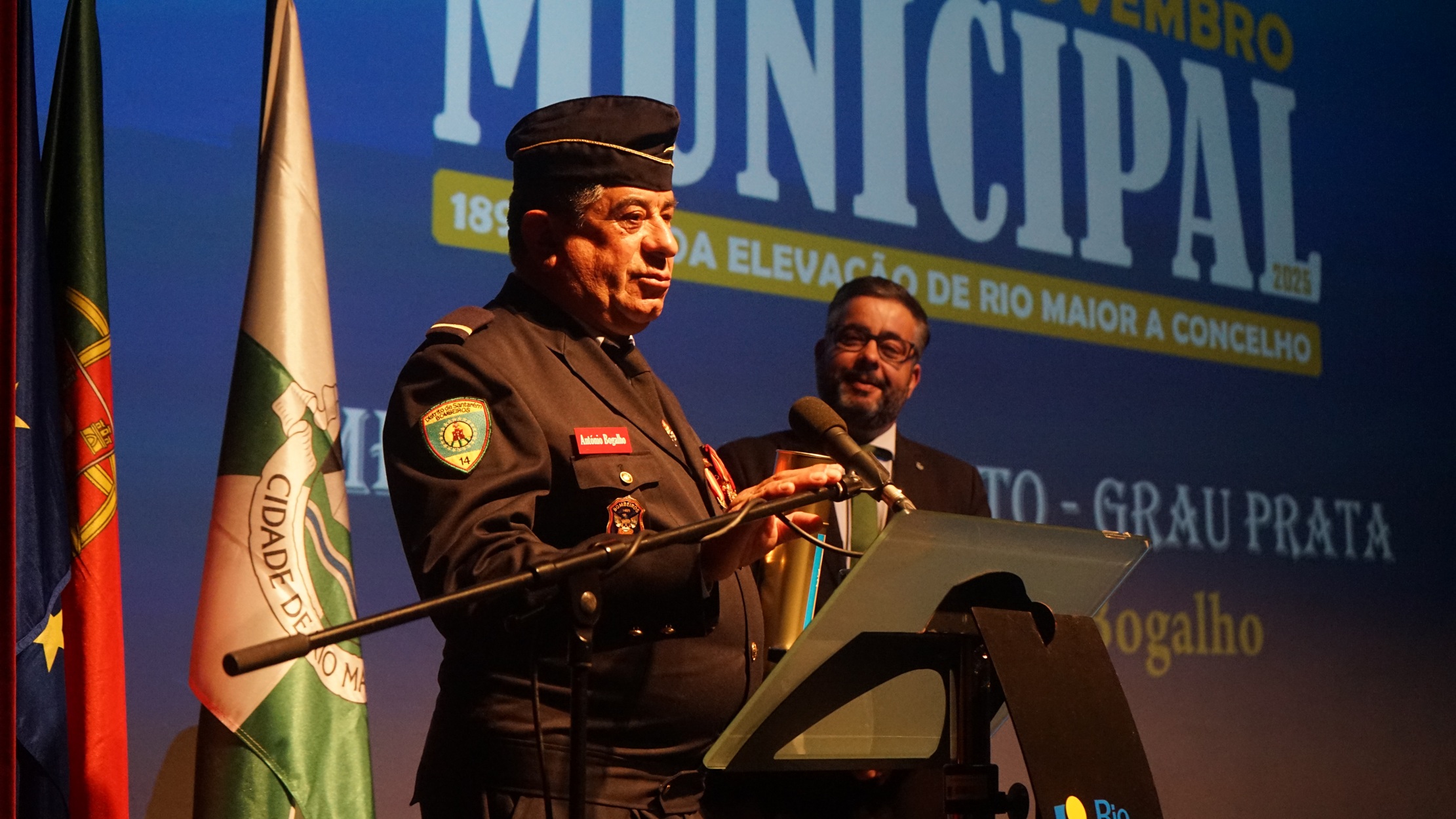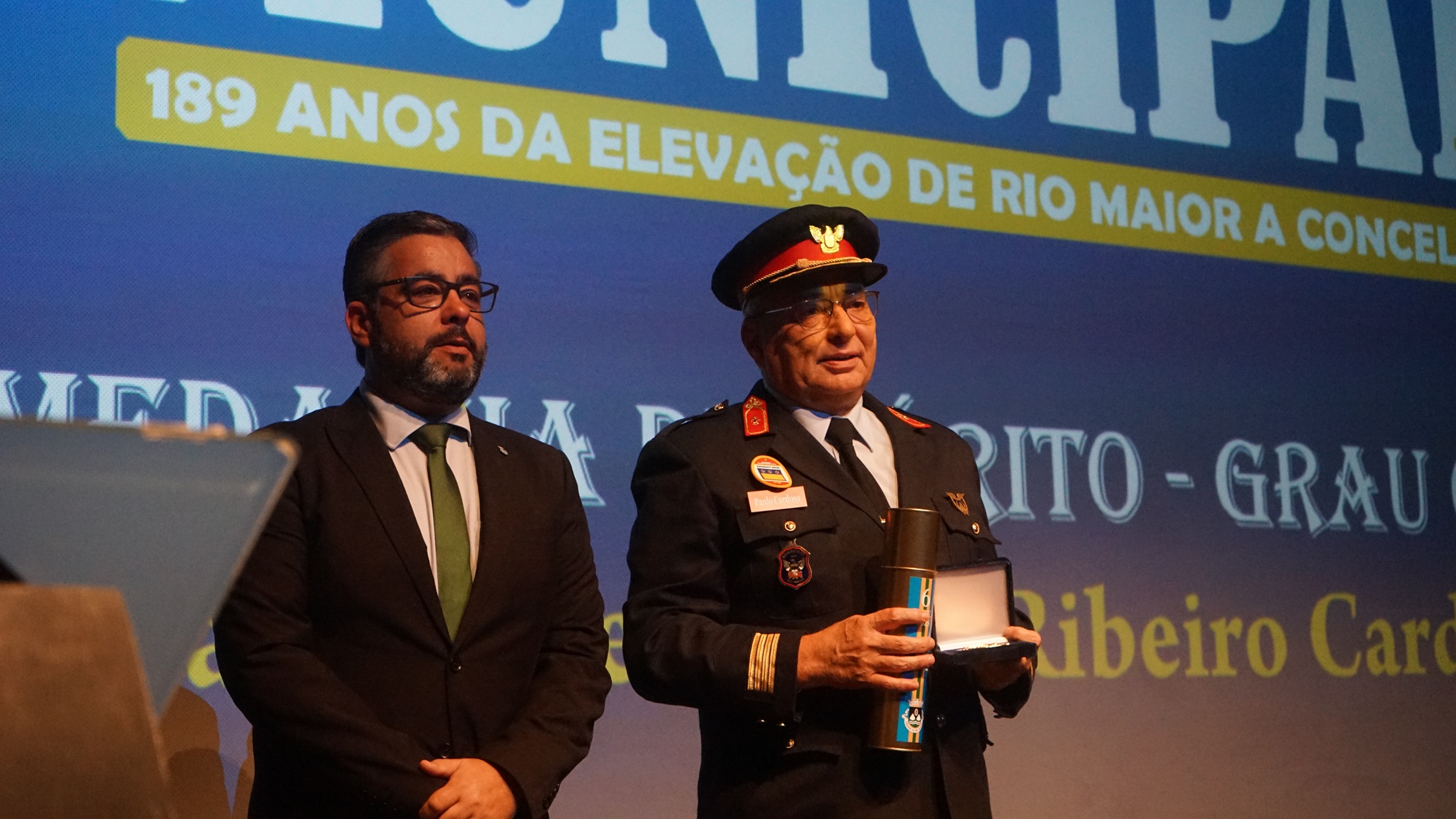 Por último, o Comandante dos Bombeiros Voluntários de Rio Maior, Paulo Alexandre Ribeiro Cardoso, foi distinguido com a medalha municipal de mérito grau-ouro.