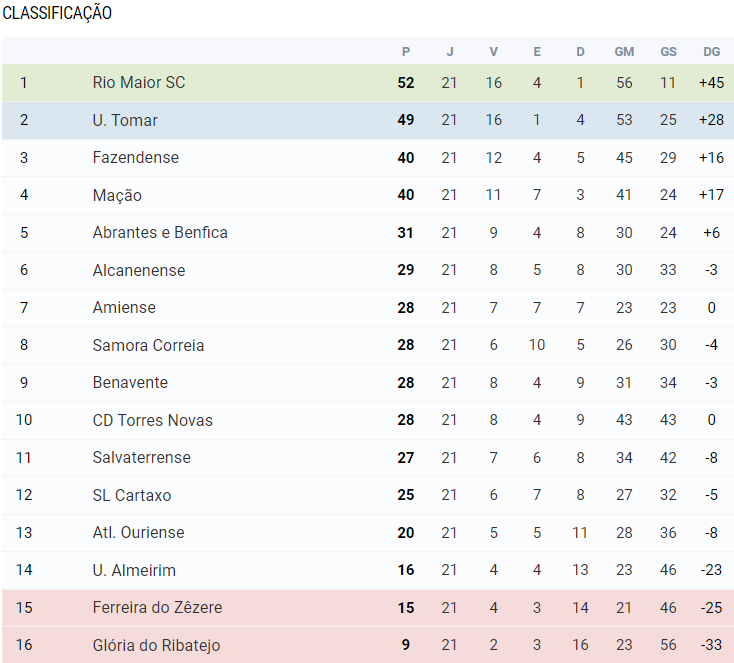 O Fazendense marcou passo nas ambições aos primeiros lugares com a derrota sofrida em Torres Novas por 2-1. O Mação já espreita um lugar no pódio depois da vitória por 3-0 sobre o União de Almeirim.