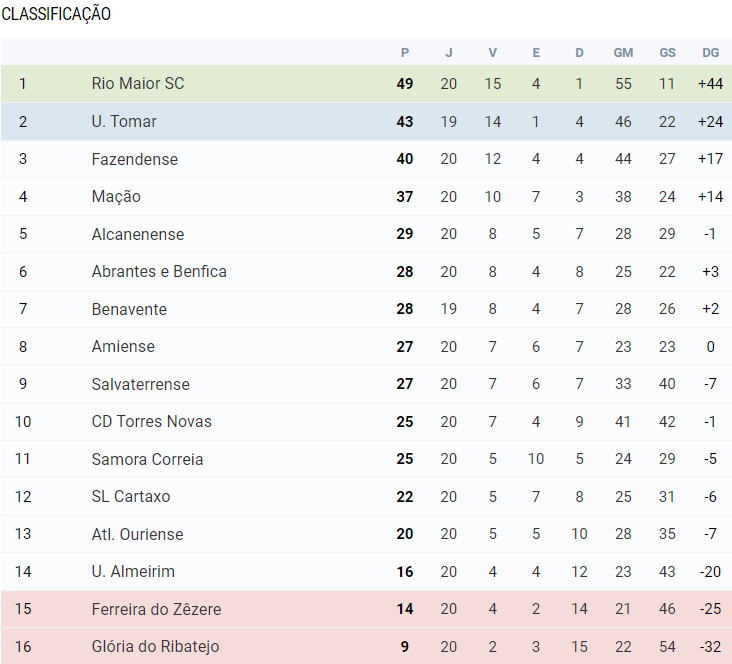 O Rio Maior Sport Clube aumentou a distância para o União de Tomar na tabela classificativa à 20ª jornada do campeonato distrital da primeira divisão da Associação de Futebol de Santarém. O clube riomaiorense aproveitou a derrota do rival para aumentar, à condição, a distância para seis pontos, fazendo o plantel sonhar com a subida aos campeonatos nacionais.