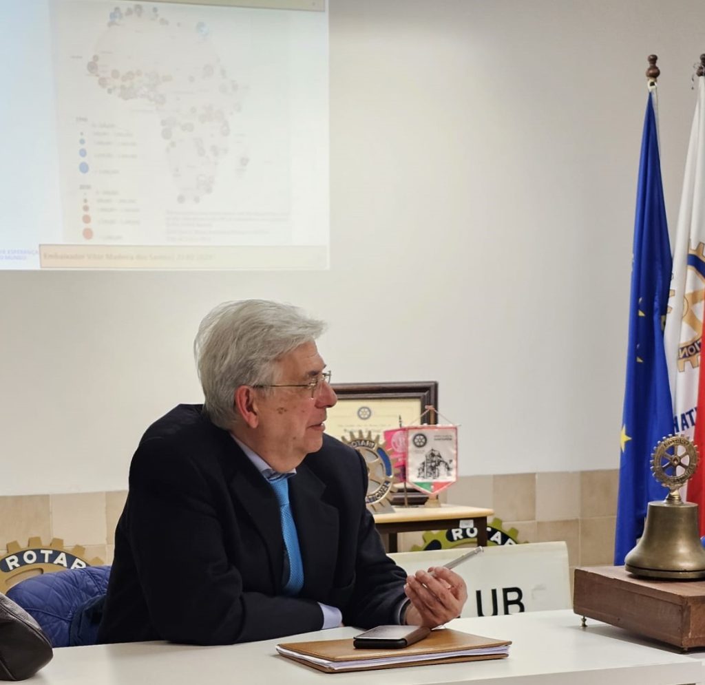 “África e a União Europeia: Uma relação a consolidar” foi o tema da conferência organizada pelo Rotary Clube de Santarém (RCS), no passado dia 27 de Fevereiro, na sua sede, junto às antigas piscinas municipais do Sacapeito, tendo como orador convidado o embaixador Vítor Madeira dos Santos.