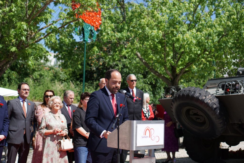 Santarém assinalou este sábado, 25 de Abril, o 52.º aniversário da Revolução dos Cravos com uma cerimónia junto à estátua do Capitão Salgueiro Maia, local simbólico de onde partiu a coluna militar em 1974.