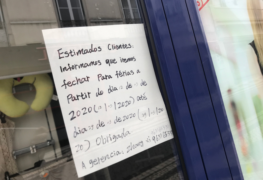 À porta de muitas lojas e estabelecimentos de restauração foram colocados avisos para os clientes esperarem à porta ou dando nota que, nas próximas semanas, estarão encerrados.
