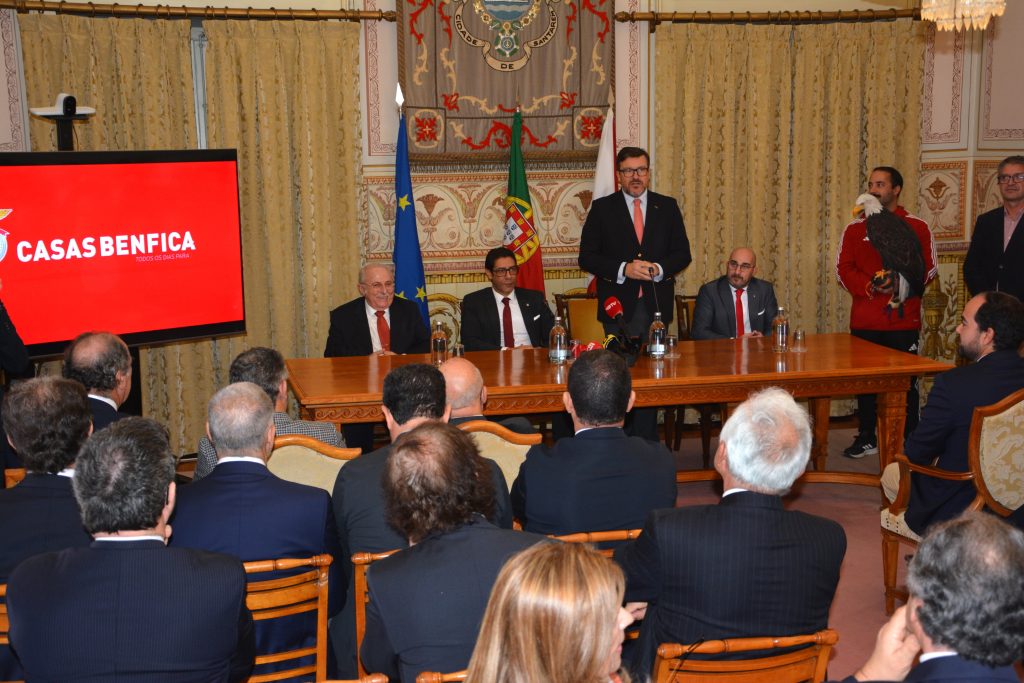 A manhã iniciou-se com uma recepção nos Paços do Concelho tendo Ricardo Gonçalves, presidente da autarquia, elogiado a grandeza da marca Benfica e destacado a presença de “muita gente” que se quis associar a esta inauguração.