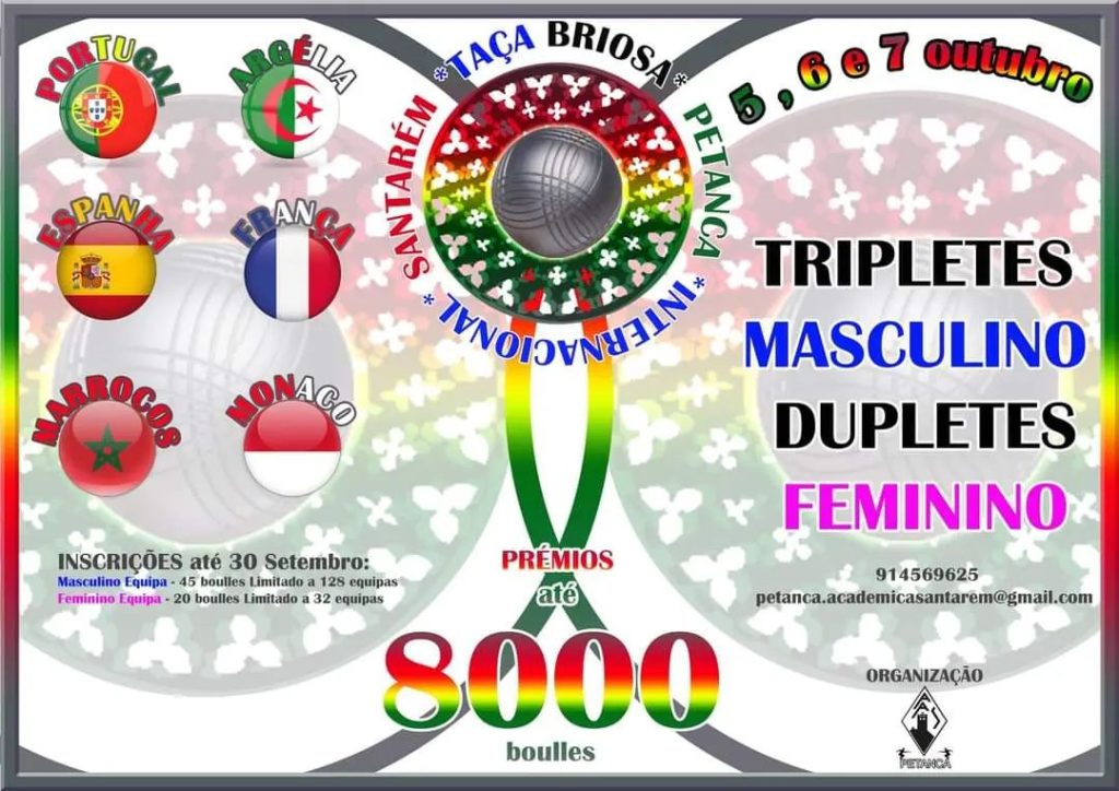 A cidade de Santarém vai ser palco, de 5 a 7 de Outubro, da Taça Briosa Internacional de Petanca, promovida pela Associação Académica de Santarém.