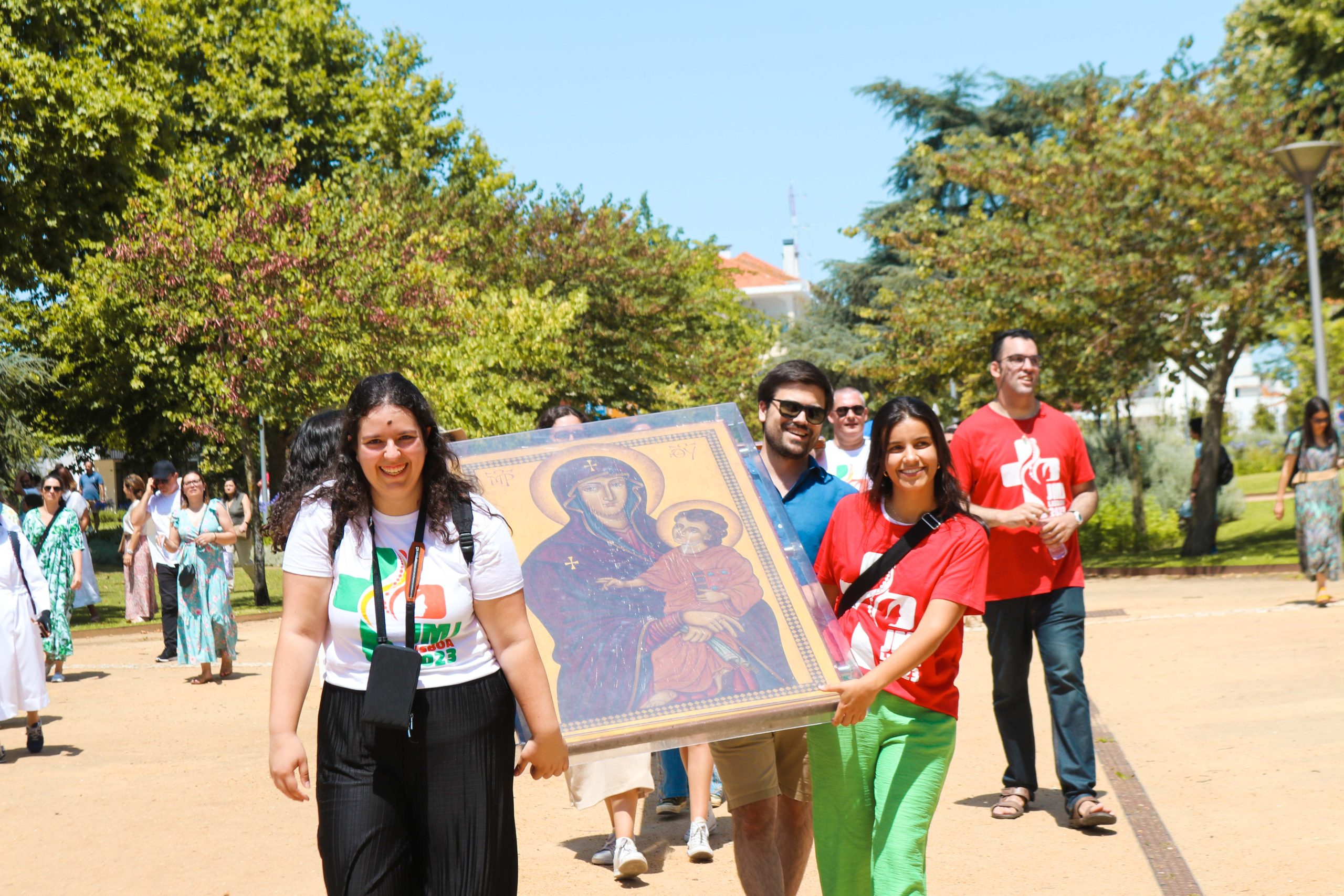 A cidade de Santarém recebeu, no passado dia 25 de Junho, os símbolos da Jornada Mundial da Juventude (JMJ). A recepção da Cruz Peregrina e do ícone de Nossa Senhora Salus Populi Romani teve início no Campus Andaluz do Politécnico de Santarém e seguiu em procissão com paragem junto à Estátua Celestino de Graça, no Largo Cândido dos Reis e na Igreja de Marvila, até ao Jardim das Portas do Sol, onde se realizou a cerimónia de acolhimento dos símbolos.