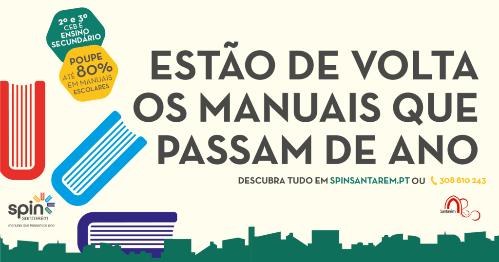 O Município de Santarém volta a aderir ao Programa SPIN – plataforma de Reutilização de Manuais Digital e Intermunicipal. Até dia 27 de Julho, aproveite para entregar os manuais que tem em casa e ganhe até 20% do preço de capa. Pode também reservar os livros do próximo ano com 60% de desconto.