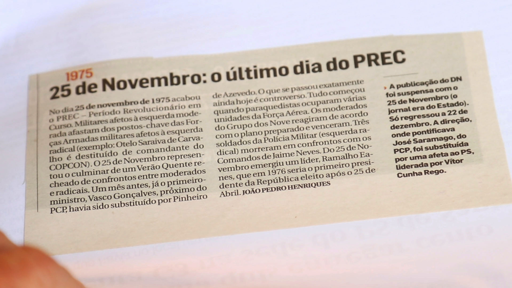 Em Novembro, regista-se um conflito em Santarém entre a CAP e o PC, do qual resultam dois mortos numa rua da Cidade. É feito o cerco à Assembleia da República por operários da Construção Civil. Costa Gomes apela à necessidade de se evitar uma Guerra Civil e oficiais paraquedistas de Tancos abandonam a sua Unidade e vão para Cortegaça, contextualiza José Cruz Marques.