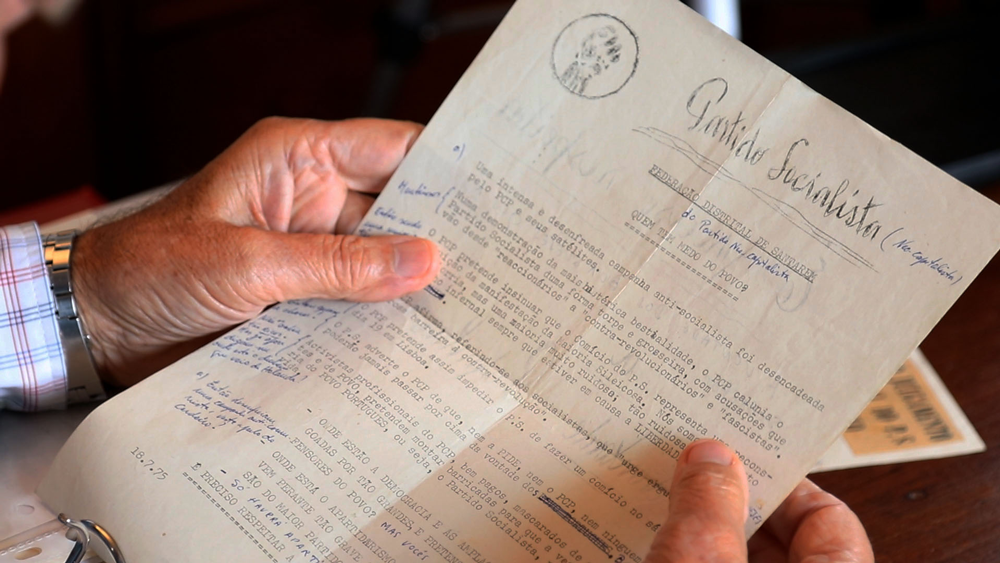 “Realizou-se um grande comício do PS na Fonte Luminosa, em Lisboa, onde se ouviram palavras de ordem como: “Está na hora, Vasco vai-te embora” e eu recebo pelo correio uma ameaça”, afirma.