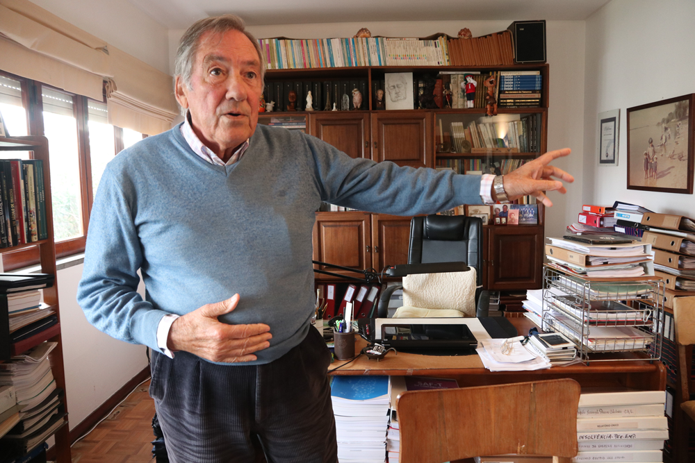 José Cruz Marques no dia em que recebeu o ‘Correio do Ribatejo’ em sua casa, entre centenas de documentos que foi guardando ao longo dos anos.