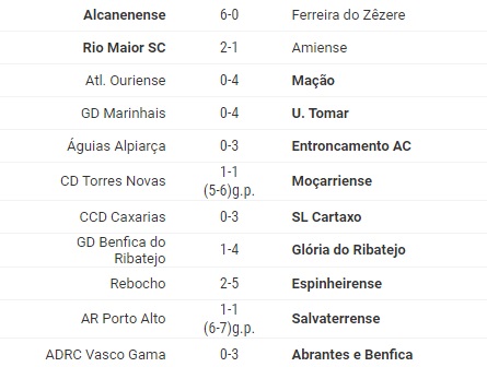 O Coruchense, Fátima e Fazendense passaram aos quartos-de-final da competição pela desistência de Ortiga, Tramagal e Aldeiense, respectivamente.