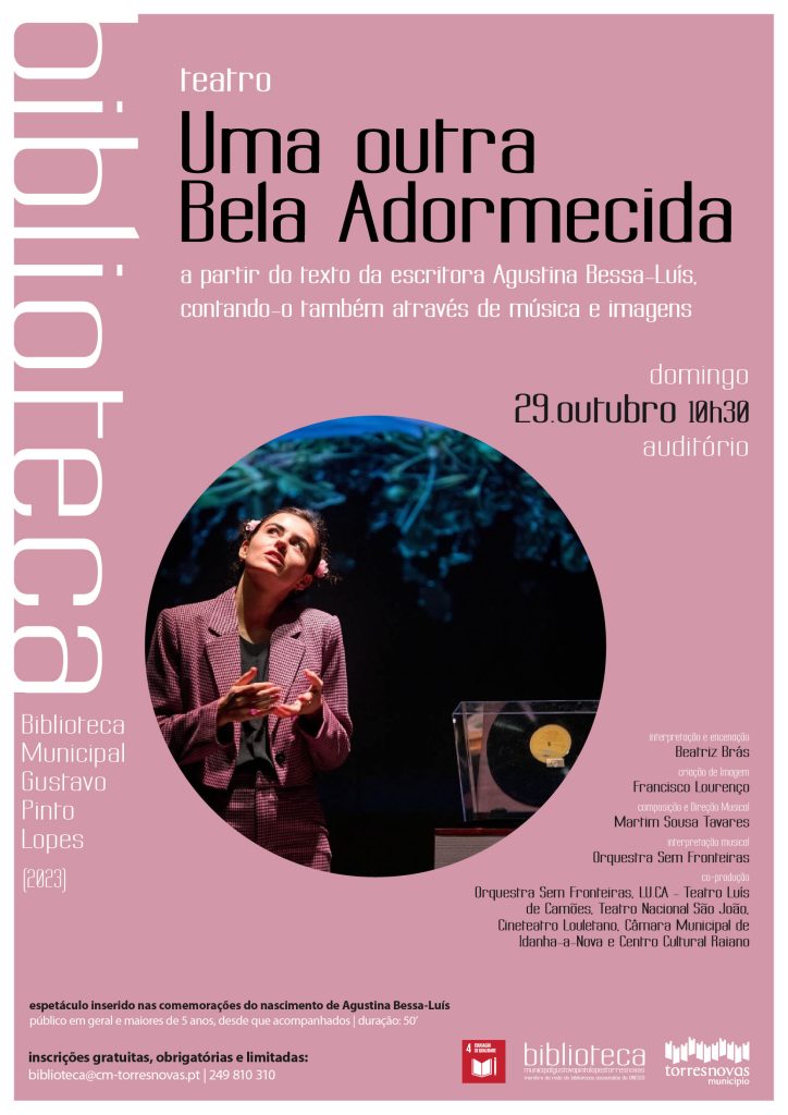 No âmbito das comemorações do nascimento da escritora Agustina Bessa-Luís, a Biblioteca Municipal Gustavo Pinto Lopes vai promover, no dia 29 de outubro, a partir das 10h30, o teatro «Uma outra Bela Adormecida».
