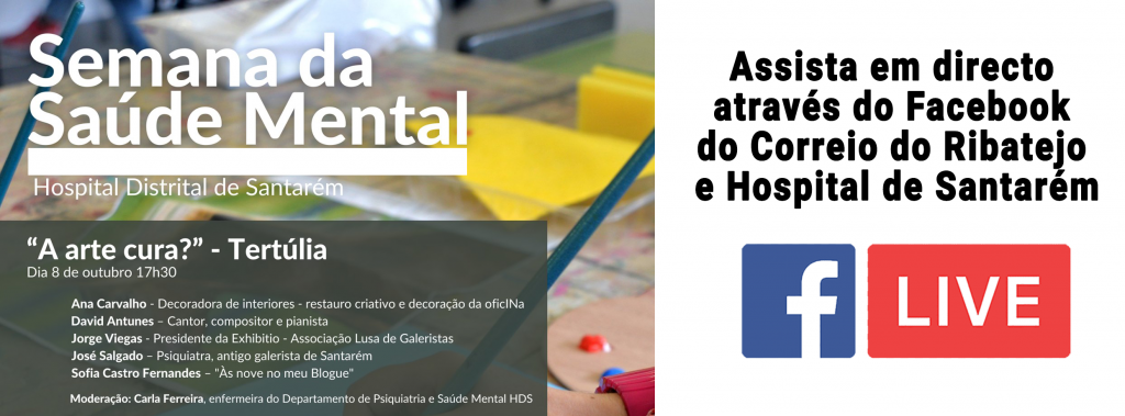 O programa inicia-se com uma tertúlia dedicada ao tema “A arte cura?”, que terá lugar hoje, dia 8 de Outubro, e será transmitida em directo através do Facebook do Correio do Ribatejo e do HDS.