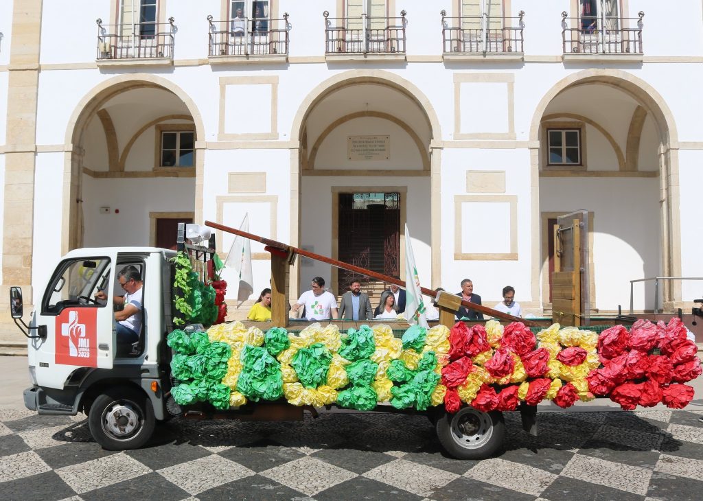 A cidade de Tomar recebeu esta manhã, dia 12 de Junho, os símbolos das Jornadas Mundiais da Juventude. Antecedendo a reunião do executivo, Anabela Freitas, presidente de Câmara, os seis vereadores e o presidente da Assembleia Municipal estiveram presentes na cerimónia, à entrada dos Paços do Concelho, que contou também com a presença do padre Rui Tereso e de voluntários das JMJ.
