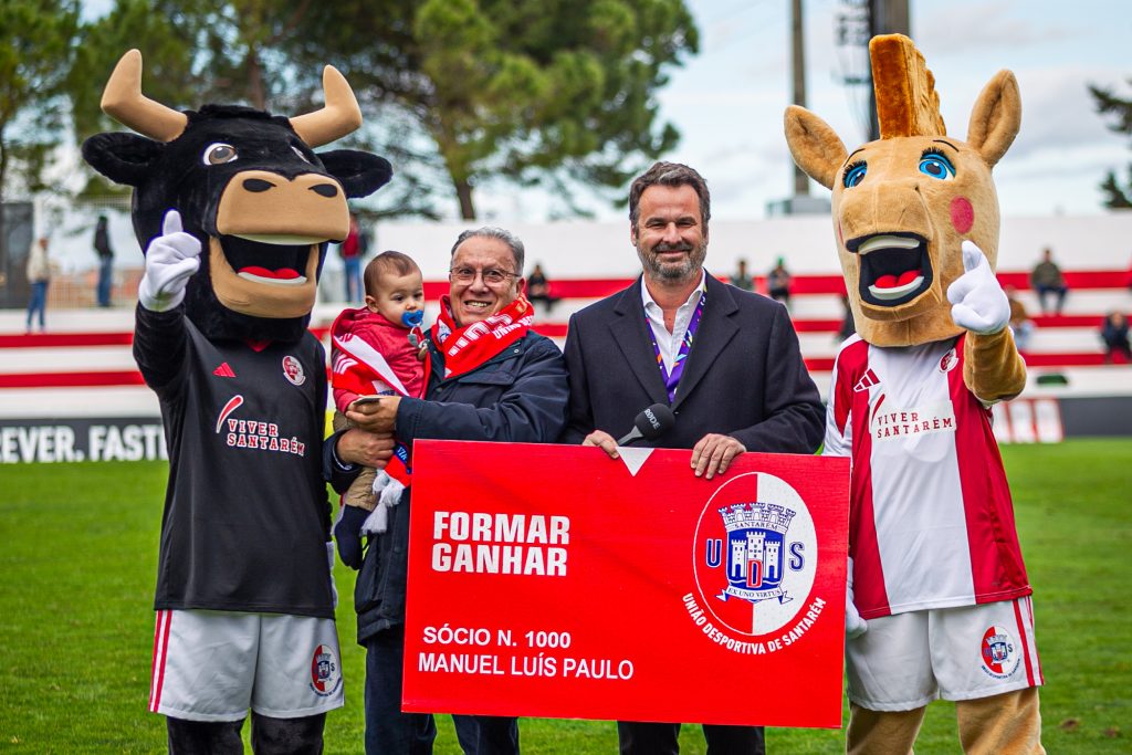 Ao intervalo o União Desportiva de Santarém apresentou o sócio 1000 e anunciou o nome das duas mascotes que têm vindo a animar as bancadas do Chã das Padeiras em dia de jogo.