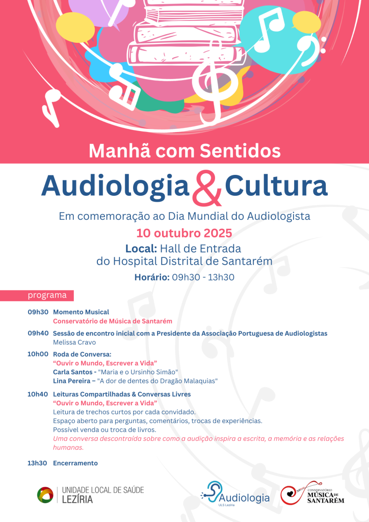 Mais tarde, haverá espaço para leituras partilhadas e conversas livres, “onde o público poderá colocar perguntas, trocar experiências e até participar numa troca de livros”, explica a ULS Lezíria que destaca ainda que a presente atividade pretende “sublinhar como a audição pode inspirar a escrita, estimular a memória e fortalecer as relações humanas”.