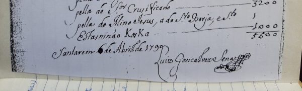 Num desses altares, datado da segunda metade do século XVIII, admiram-se várias pinturas que nele se integraram sem critério, quatro delas ainda do século XVI e uma outra já setecentista. É esta última tela que merece agora a nossa atenção, por duas razões. Em primeiro lugar, é obra do famoso pintor Luís Gonçalves Sena (1713-1790), glória das artes locais nos reinados de D. João V e de D. José I e que mereceu ser chamado pelos contemporâneos o ‘Apeles Santareno’. Só por si, a autoria justifica maior atenção, mesmo que se trate de trabalho algo discreto e convencional. Em segundo lugar, o tema iconográfico é menos comum, pela inspiração livre com que o artista adaptou o texto vetero-testamentário: o que se representa é ‘O Arcanjo Rafael, como Anjo da Guarda, conduzindo o menino Tobias na estrada da redenção’.