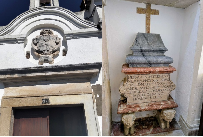 O túmulo do casal fundador da Ermida é obra de Luís Nunes Tinoco, com os típicos estilemas que sempre o caracterizam, numa visão de arquitecto-pintor muito singular. O micro-sarcófago de mármore de cor assenta em dois leões, característicos de outros desenhados pelo mesmo artista. Tem a legenda: DESTA CAZA ONDE DEOS FES O Sº / MILAGRE ANNO 1266 FIZERÃO IGR: O LDº MANOEL DOS REIS / TAVARES E SVA MULHER MARGARIDA CEZAR DE ALMEIDA E A DOTARÃO / IAZEM DEBAIXO DO ALTAR DELLA. Junto ao altar de mármores vermelhos, e sob a opulenta cenografia do zimbório piramidal de ousado cromatismo, o túmulo dos fundadores oferece à ermida outra marcante nota visual. O médico era, como se disse, homem culto: escreveu ‘Controversiae Philosophicae, et Nedicae ex- doctrina de febribus’ (Lisboa, 1667) e o tratado de medicina ‘De duobos magnis Artis Medicae auxiliis tractactus duplex’ (Lisboa, 1671), deixando manuscritas a ‘Cirurgia Especulativa’, ‘Psalmos’ (a várias vozes) e uma Ladainha da Virgem. Trata-se de uma daquelas figuras esquecidas de intelectuais de província que abundaram no século XVII e que urge investigar.