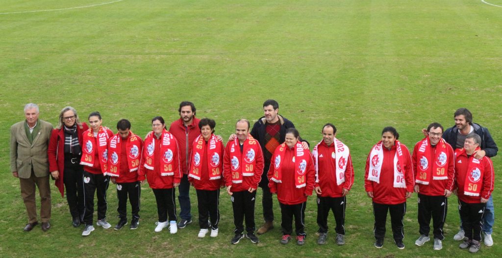 Presentes na apresentação, a vice-presidente da Câmara de Santarém, Inês Barroso, o presidente da APPACDM de Santarém Luís Amaral, o presidente da SAD da União José Gandarez e do clube, Pedro Fernandes, para além de alguns dos mais de vinte atletas que constituem esta secção autónoma.