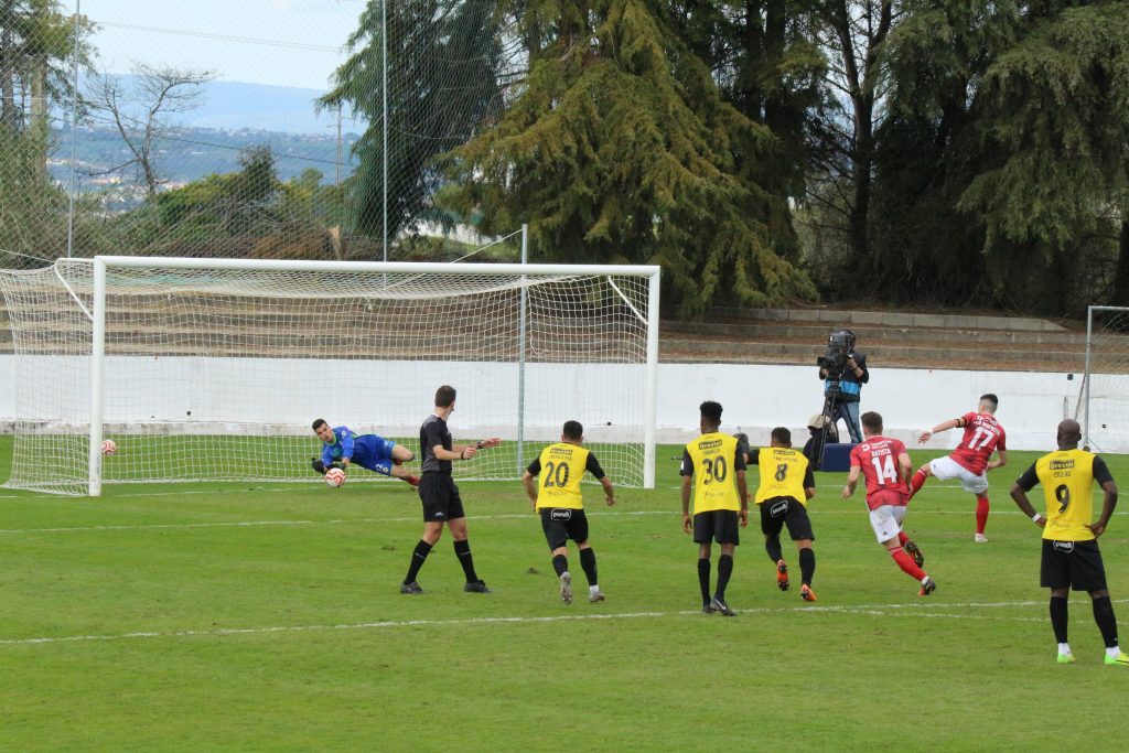 Três jogadores na ‘cara do golo’ que falharam o alvo, uma expulsão (justa) à passagem da meia hora e uma grande penalidade falhada é o resultado de uma primeira parte em que o factor principal foi mesmo a falta de concretização das oportunidades criadas por parte da turma escalabitana.