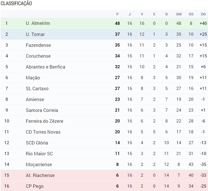 O União de Almeirim somou a décima sexta vitória em dezasseis jogos realizados no campeonato. Os almeirinenses igualaram o feito da equipa do Fátima na época 2015/16 e estão a um vitória de fazer história no campeonato distrital da Associação de Futebol de Santarém.