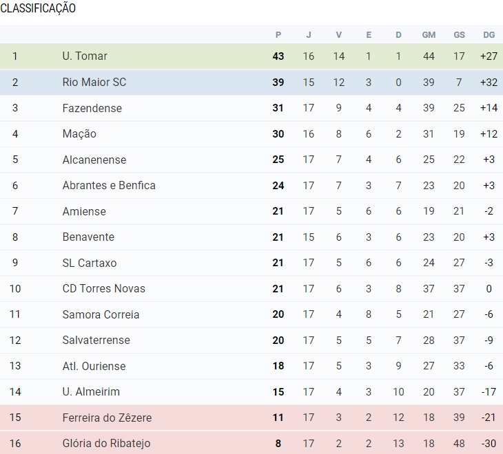 O Rio Maior venceu por 3-1 na recepção ao Samora Correia. Os riomaiorenses são a única equipa da tabela classificativa sem derrotas e se vencerem o jogo em atraso ficam a apenas um ponto de diferença do U. Tomar.