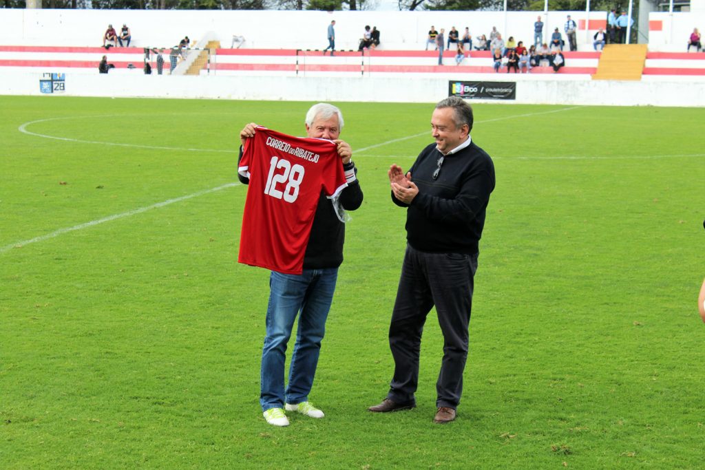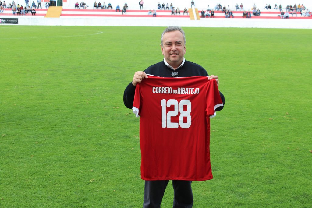 Também o ‘Correio do Ribatejo’ foi chamado ao relvado, para receber uma camisola da União, com o número 128, relativo ao aniversário que assinalámos no passado dia 9 de Abril.
