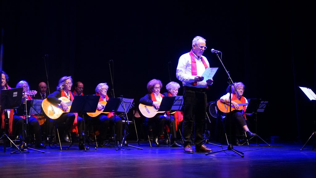 Após o intervalo e das intervenções dos representantes das entidades parceiras da UTIS – Câmara Municipal de Santarém representada por Elisabete Filipe; União de Freguesias da Cidade de Santarém, representada por Marcelo Morgado; e Santa Casa da Misericórdia de Santarém, por Maria de Lurdes Asseiro, bem como do coordenador Prof. Vítor Barreto, – que deixaram mensagens de feliz Natal e próspero ano novo, e após um intervalo, a Festa voltou com a Tocata de Cavaquinhos & Escola de Cavaquinhos (Prof. José Joaquim Ferreira Santos) que interpretaram os temas “Olhos Negros”, “Fonte das 7 Bicas”, “Pauliteiros do Douro”, “Moda de Saias” e “Chula da Livração”.
