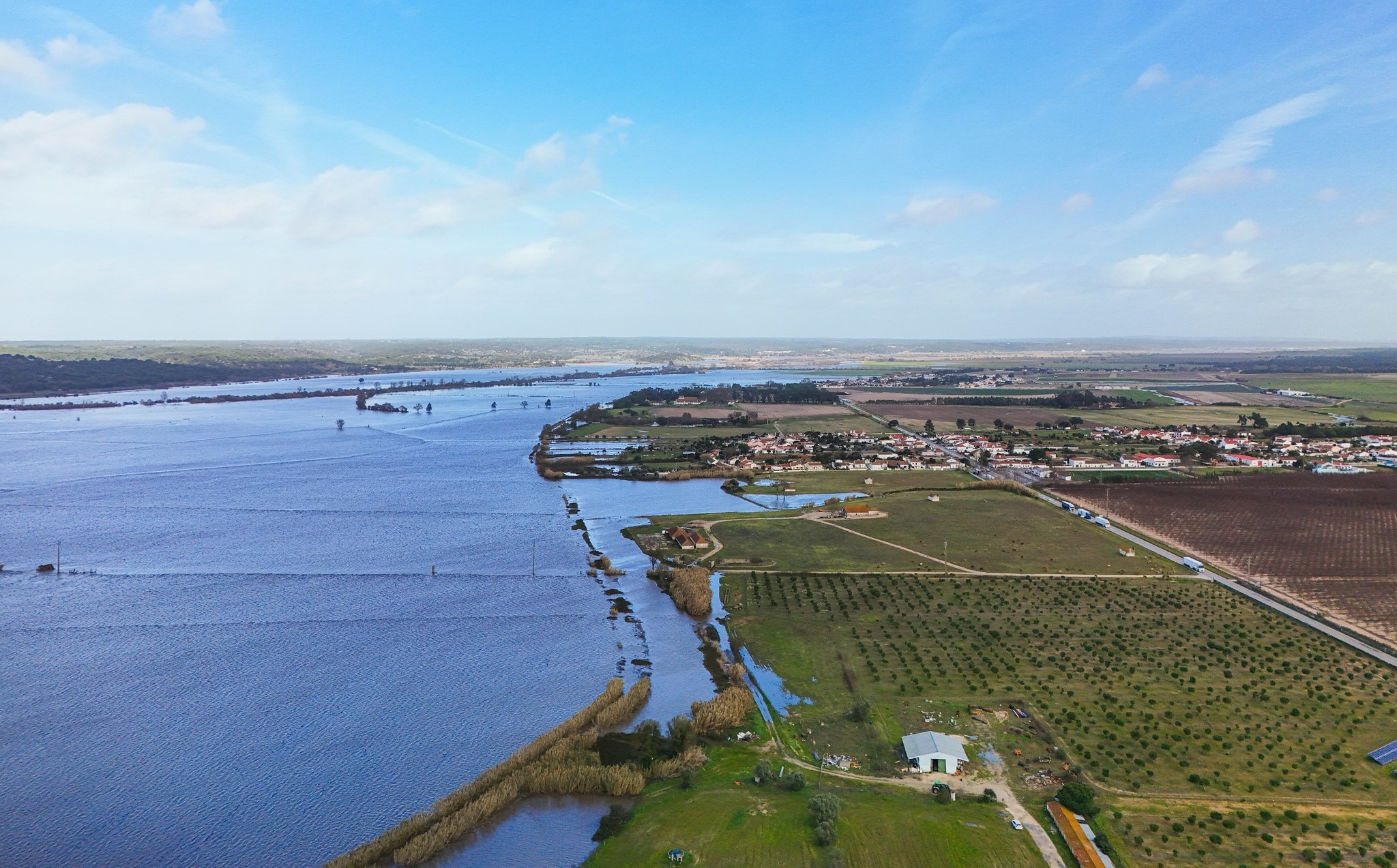As inundações mantêm-se também em Coruche, devido ao galgamento da margem direita do Sorraia, e em Alcácer do Sal.