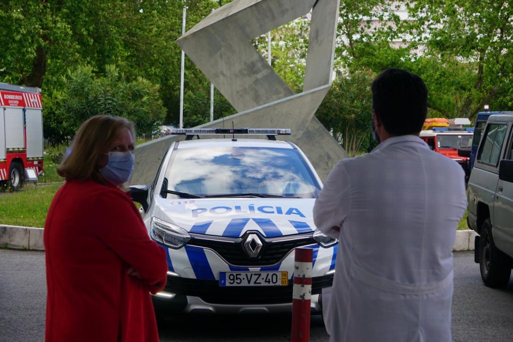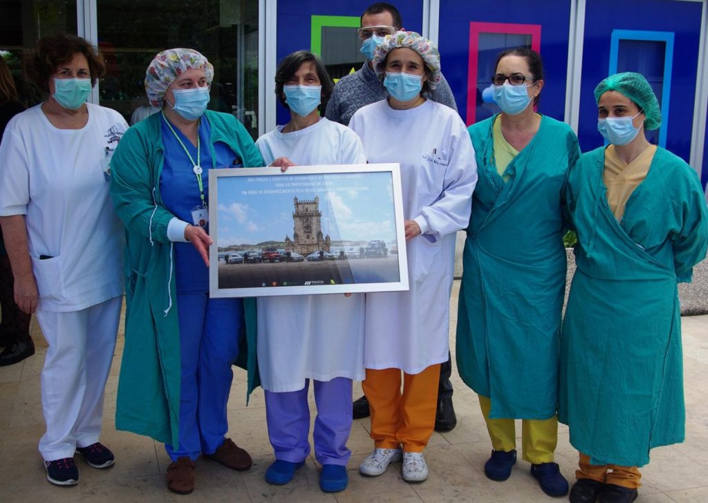 Junto ao hospital, os participantes saíram das viaturas por breves momentos e um elemento da PSP entregou à Presidente do Conselho de Administração do HDS um placard a destacar “o trabalho e o profissionalismo”, no final foi tocado o Hino Nacional.
