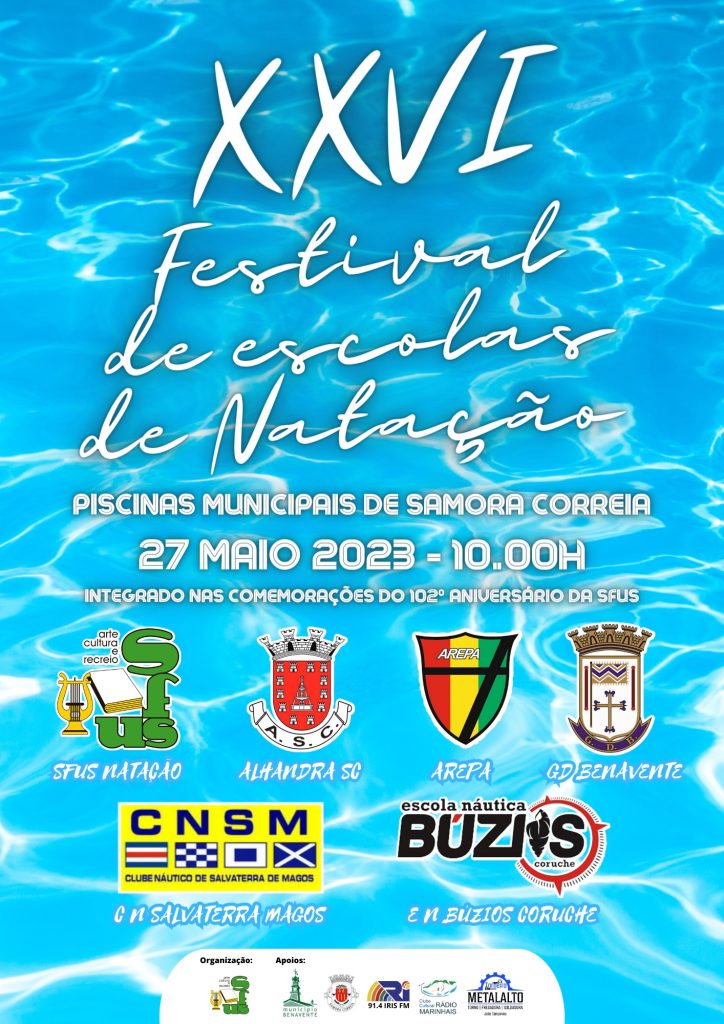 O XXVI Festival de Escolas de Natação em Benavente, decorre a 27 Maio, pelas 10h00, nas Piscinas Municipais de Samora Correia.